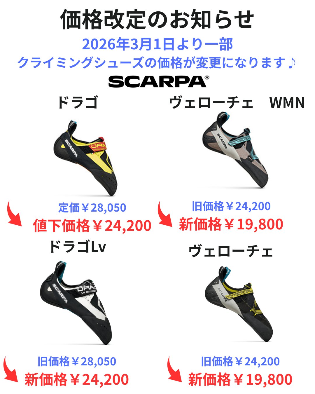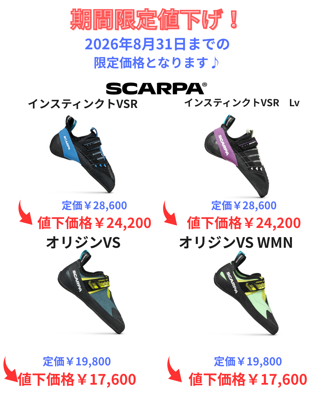 SCARPA クライミングシューズ特別価格で販売中です♪