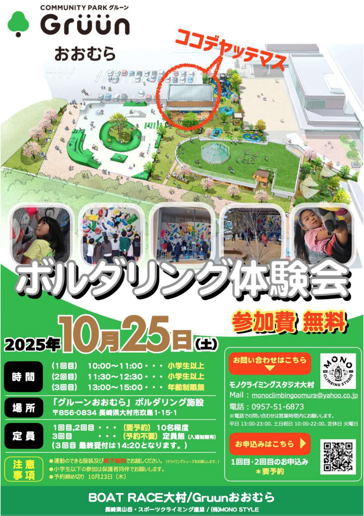 10/25(土)ボルダリング無料体験会@グルーンおおむら