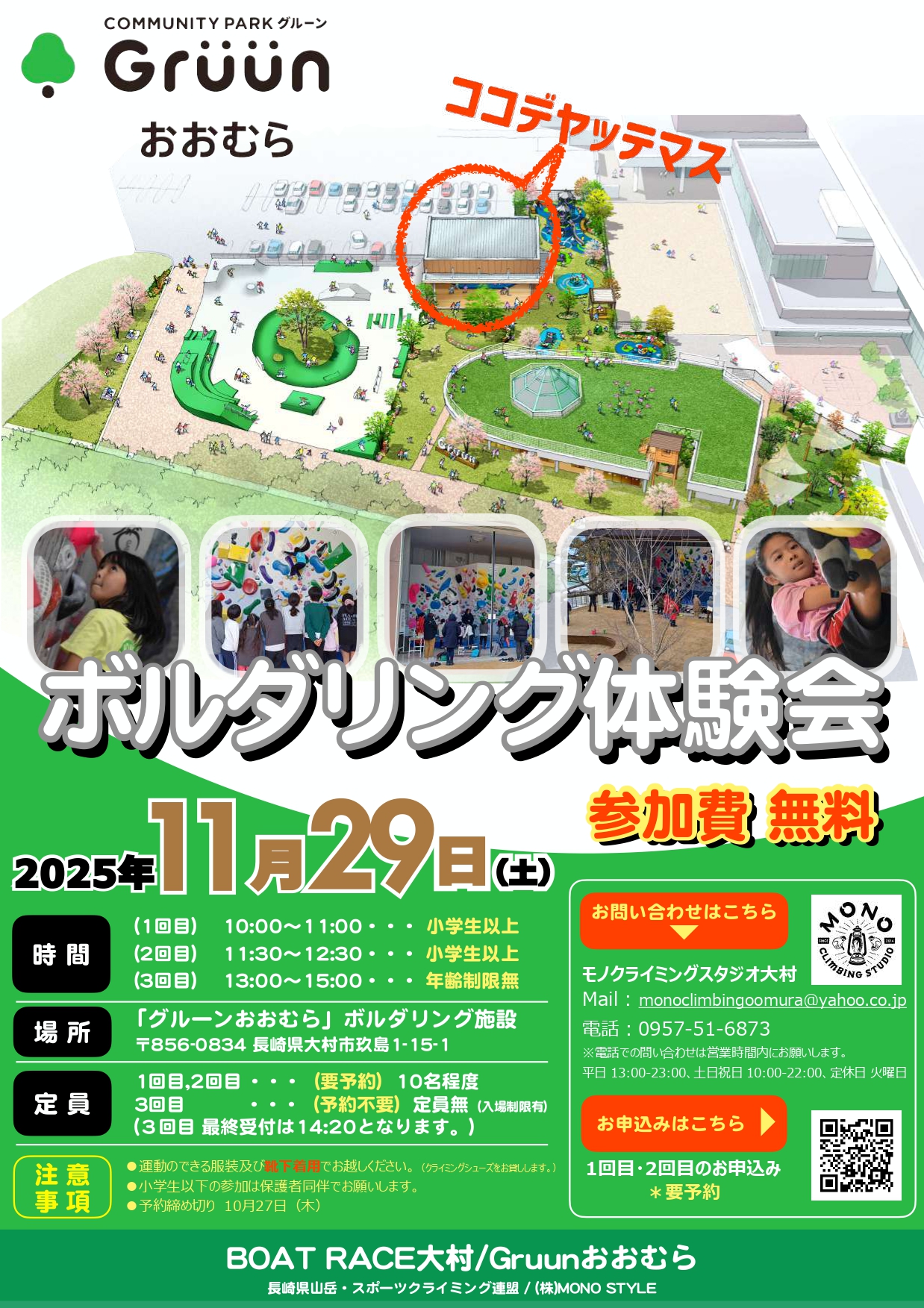 11/29(土)ボルダリング無料体験会@グルーンおおむら
