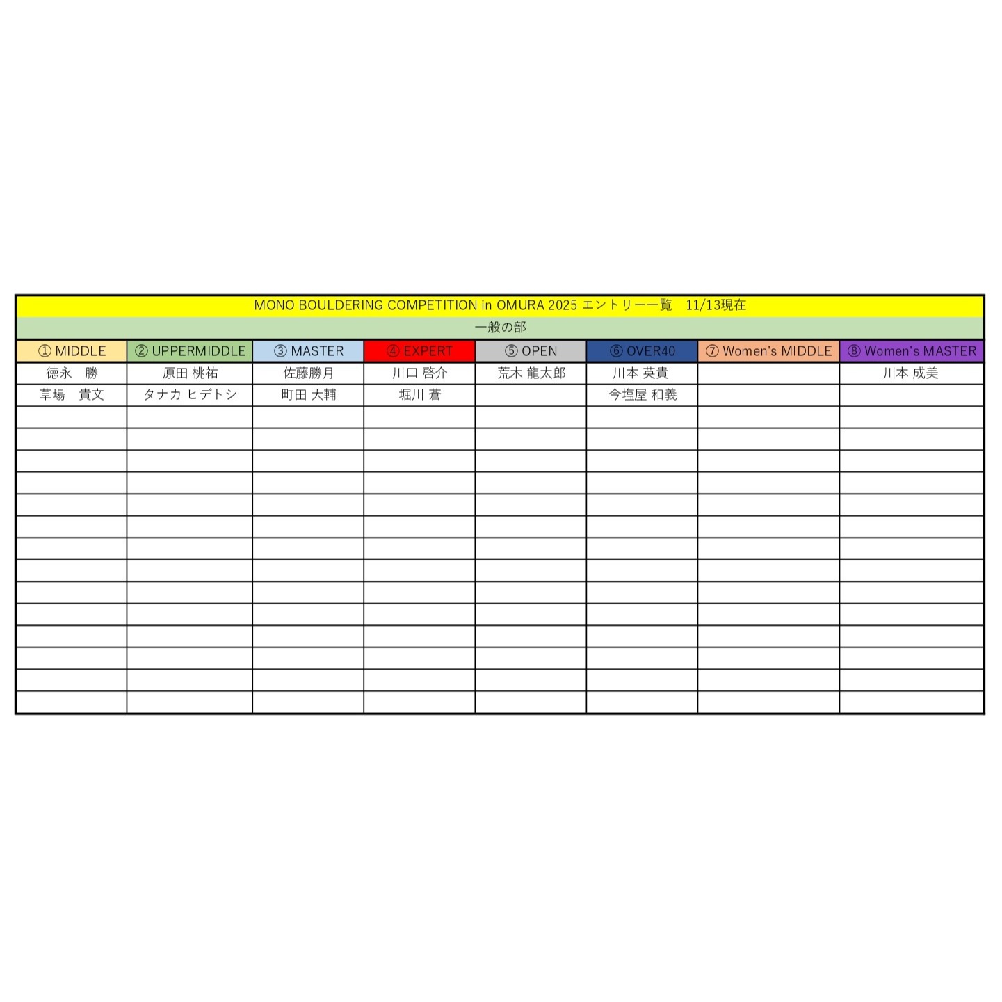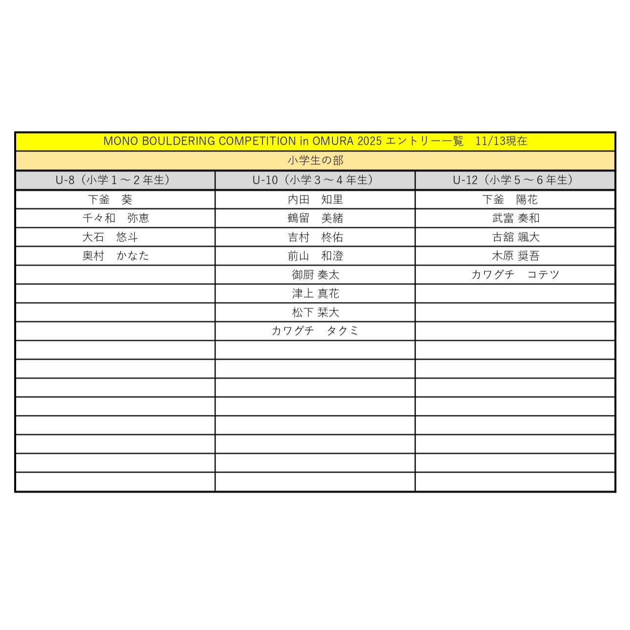 12/7のコンペのエントリーリスト更新です🧗 一般の部も徐々にエントリーが増えてきました‼️ 皆様のエントリーをお待ちしております💪❤️🔥 エントリーはコチラからお願いします🙇♀️✨