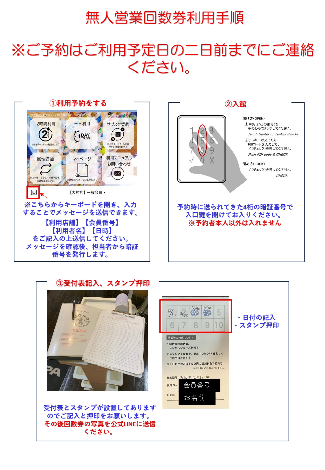 ⚠️ご予約はご利用予定日の2日前までにご連絡ください⚠️