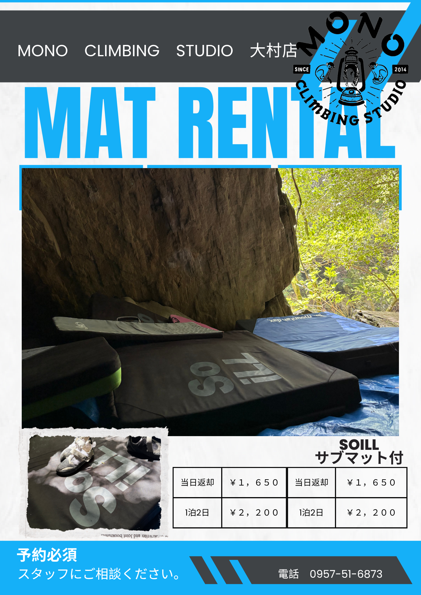 マットを持ってないけど外岩で登りたい方まで✨