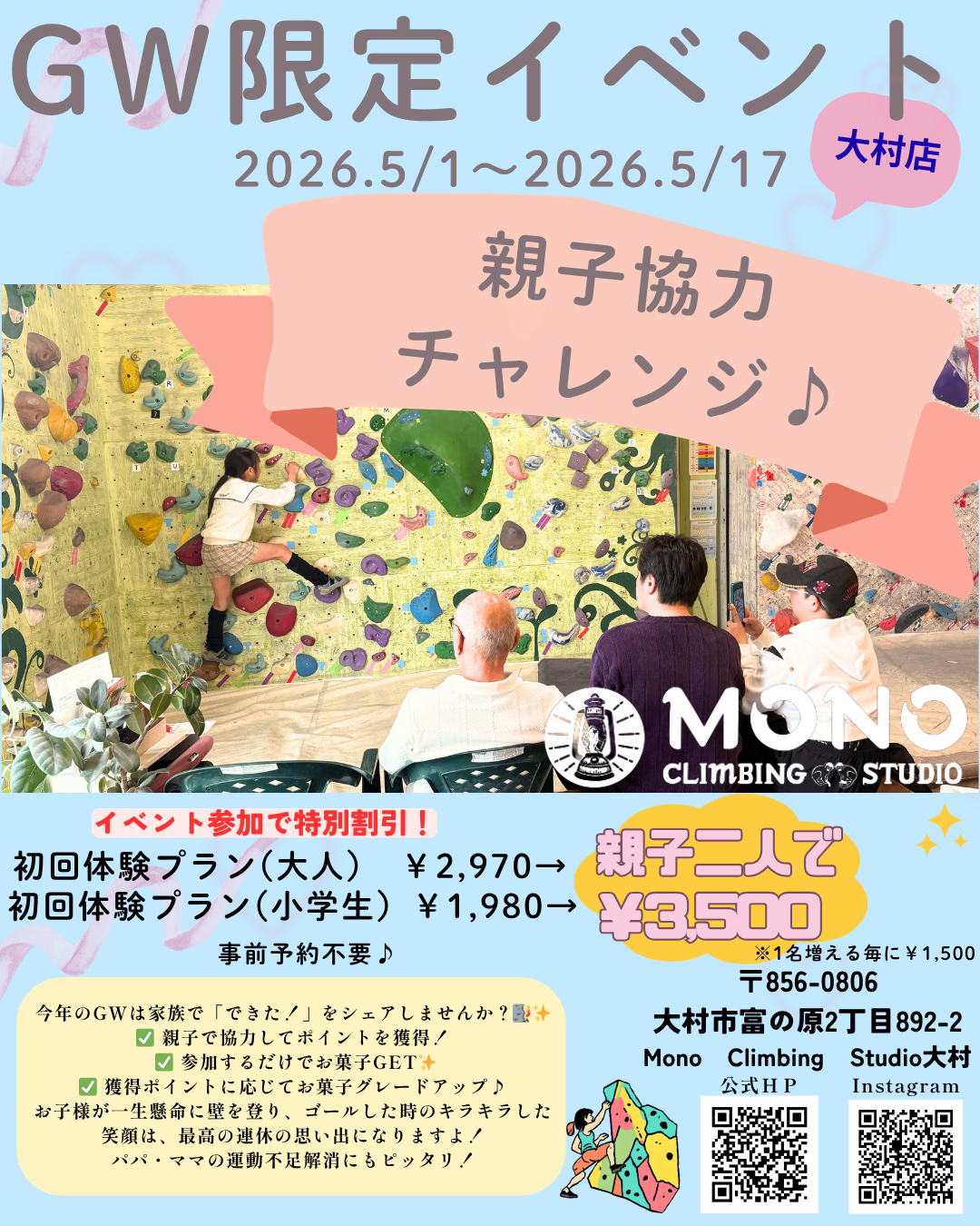 5/1~5/17の間GWキャンペーンとして親子協力イベントを開催いたします😍✨