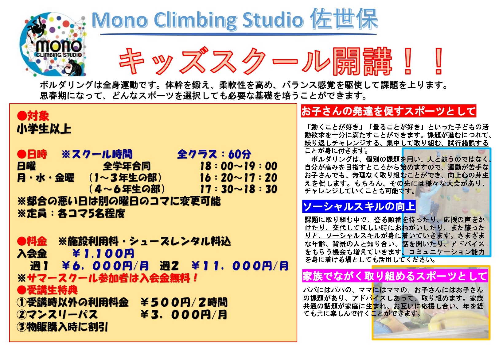 この度、9月からキッズスクールを開講いたします。